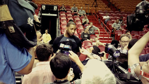 有记者问到姚明,麦蒂直说很可惜,姚明是一个出色的中锋,这么早就因伤病被逼退役,而他和巴蒂尔,都还在赛场上。他说,自己一直憧憬总决赛,回想到自己的职业生涯,有太多的“如果”,“如果当时在火箭的时候我没有受伤”,“或者姚明没有受伤”,“如果格兰特-希尔在奥兰多时保持健康”,“如果……”
