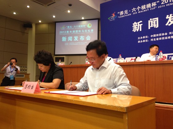 河北养元智汇饮品股份有限公司冠名签约2013衡水湖国际马拉松赛 李春彦摄