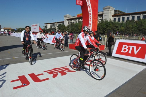 下午13:30,浩浩荡荡的骑行队伍紧随“绅宝”花车引领,从英雄纪念碑北侧出发,以英雄纪念碑东侧为终点,绕着天安门广场荣誉骑行一圈,共计1.7公里。北京市政府副秘书长侯玉兰、北京市体育局局长李颖川、北京市体育局副局长李晋康、北汽集团副总经理张健、北汽股份有限公司副总裁梁国锋等相关领导和北汽员工参与其中,身着骑行服装穿梭于赛段上,与世界各国顶尖运动员共同畅享自行车比赛的激情与魅力。