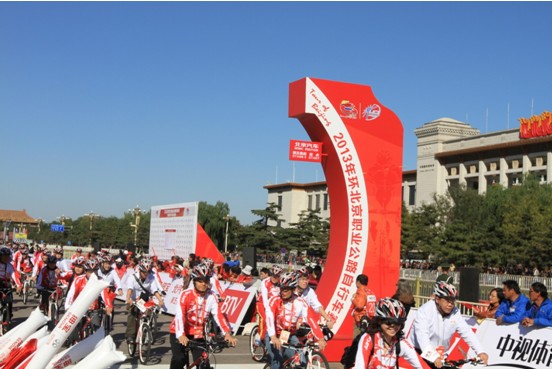 10月15日,由北汽“绅宝”冠名,2013环北京职业公路自行车赛(简称环京赛)第五赛段——天安门广场至水立方东门赛段正式开赛。来自世界19支专业车队齐聚天安门,开启环京赛最后一场冠军争夺大幕。为支持本届环京赛圆满举办,北汽“绅宝“除赞助赛事用车外,还积极组建了荣誉骑行队伍及创意花车巡游,并在鸟巢进行车辆展示,为环京赛增彩。