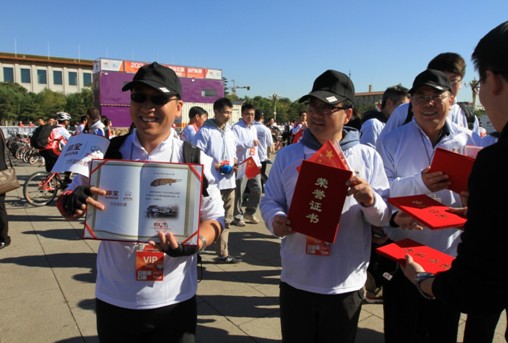 组委会为北汽荣誉骑行队伍颁发荣誉证书