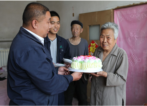 (图为侯建良、徐晓东为李大娘过母亲节)