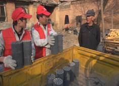老人面对突如其来的举动显得有些不知所措,愣了半天神儿才反应过来,“人刚才来过,怎么这会儿工夫还把煤拉过来了,不忙不忙,你们先到屋里喝水,我自己搬就行了。”