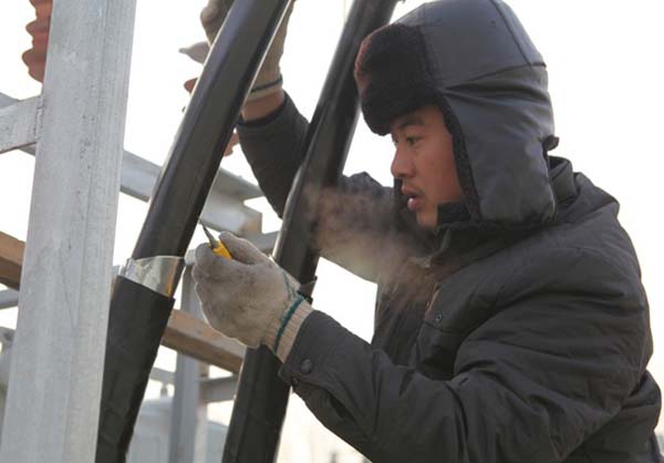 12月24日上午,在大城县供电公司位敢35千伏变电站原址新建现场,施工人员正在拿着喷枪烘烤着僵硬的电缆,准备剥离电缆外皮,为2台新安装的10000千伏安主变一次出线做电缆终端头;在田家庄综合变压器改造现场,施工人员伫立杆顶,在雾霾寒风中,为变压器安装台架、改造10千伏线路。这是该公司为铸造坚强电网,全力以赴,奋力冲刺农网升级工程,保证电网建设质量,助力县域经济发展的一个缩影。