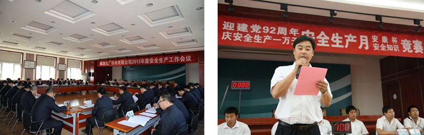 一是结合“安全管理提升”活动的开展,按照要求,开展了各项安全培训,重点是《安规》、《安全工作奖惩规定》、《安全事故调查规程》、《电力安全事故应急处置和调查处理条例》《作业指导书》等知识的培训、考试,累计培训考试768人次。3月30日聘请廊坊供电公司安全质量监察部负责人对新修订的电气工作票实施细则进行了详细讲解,公司120余名“三种人”参加了培训;5月20日聘请专家对92名一线生产人员进行了紧急救护法培训;10月28日开展了消防培训及演练。二是开展安全月警示教育,将“安全生产月”警示片上传到公司局域网,组织各单位下载收看,强化职工履行安全生产规程、制度的责任意识,增强员工安全防范意识和事故防范能力;6月24日上午,为普及安全文化知识,筑牢安全根基,在公司四楼会议室举办了2013年度安全生产月、大厂公司迎接安全生产一万天安全生产知识竞赛活动。