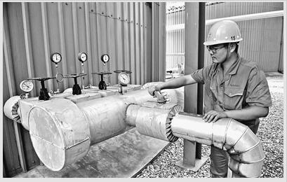 图为8月10日,工作人员在沼气发电站调试沼气罐设备。