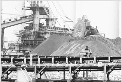 11月20日,在江苏连云港港口煤炭货场,大型机械在输送电煤。