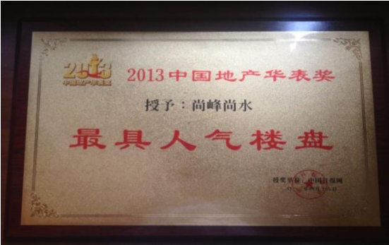今年4月18日,中国日报网主办的“2013中国房地产创新论坛暨中国地产华表奖颁奖盛典”在京举行,活动上,300余名中国地产行业泰斗精英汇聚2013地产华表奖颁奖盛典的活动现场,共同探讨中国地产行业的转型、突破与创新。“分享荣耀见证辉煌地产华表中国样本”地产华表颁奖盛典上,集中树立和表彰一些地产行业标杆项目,给世人以学习的样本。其中,正源•北京•尚峰尚水荣获“2013中国地产华表奖最具人气楼盘”奖。