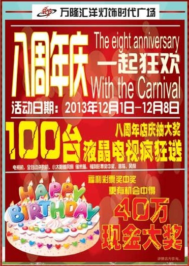 折扣够给力,活动够刺激,奖品够诱惑!8年一遇,只此一天,12月8日,快来和万隆汇洋一起过生日吧!