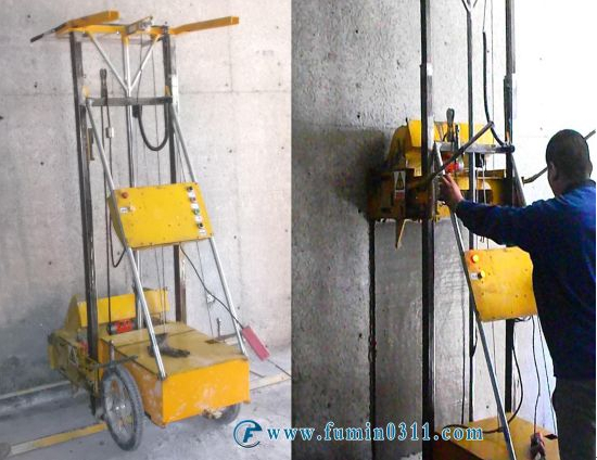 1、该机利用可以改变角度的抹板(完全仿制人工手动)上升大角度粉墙振动机振实墙面、压光,实现了原地下机,每粉一次与下一次墙面有微电脑控制平整。只有这样才能保证粉出的墙面竖直横向,零误差是完全粉到顶,这一点是独一无二的。