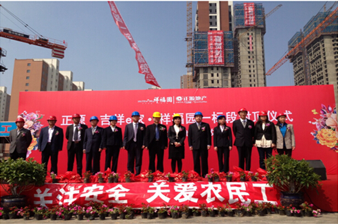 5月12日上午,正源吉祥e家•祥福园05区二标段工程示范区工地人声鼎沸,鞭炮齐鸣,当嘉宾们将十余袋装满喜庆的混凝土倒入推车后,进行现场浇筑,寓意吉祥e家祥福园一标段喜封金顶。大连金州新区总工会副主席李晓韫女士、正源地产多位高管、供应商代表及农民工共同见证了这一喜庆时刻。