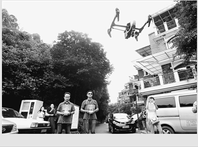 9月15日,重庆市大渡口区,无人机正在对某小区违建情况进行航拍取证。