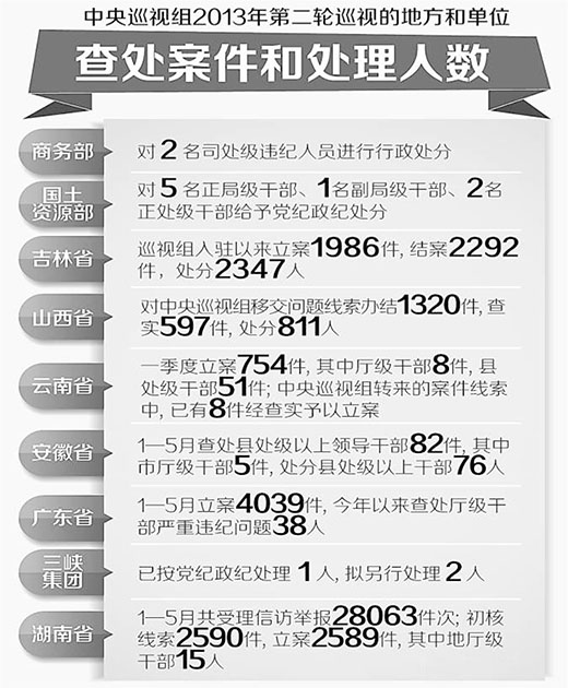 其中,受到高度关注的是,各被巡视地方和单位针对中央巡视组反馈的有关案件线索,逐项核查处理。同时,进一步加大违纪违法案件查办力度,查处了一批大案要案。