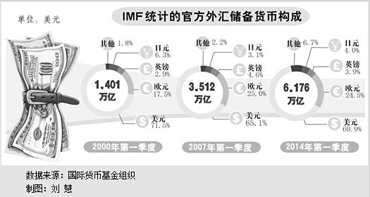 美国政府对法国巴黎银行重罚近90亿美元,导致法国方面不满。法国财政部长米歇尔·萨潘日前呼吁对国际支付中使用的货币进行“再平衡”,希望更多使用欧元和新兴市场国家货币,降低对美元的依赖。