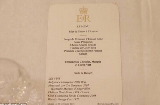 英国国宴菜单出炉