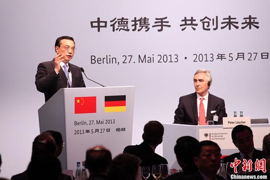 正在德国进行正式访问的中国国务院总理李克强,当地时间5月27日,出席中德工商界午宴并发表演讲。中新社发 郭金超 摄