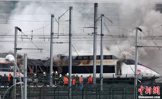 当地时间5月30日,法国圣丹尼,一列巴黎至里昂的高速火车发生火灾。图片来源:CFP视觉中国