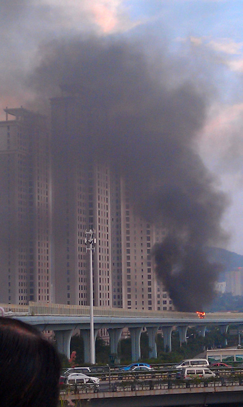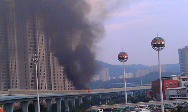 这是6月7日拍摄的厦门高架路上的快速公交起火事故现场。新华社发