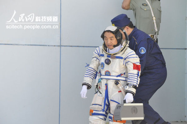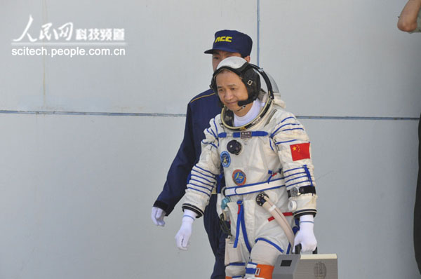 航天员聂海胜第二个步出问天阁。(人民网记者 魏艳摄)