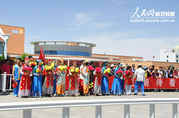 各族群众为神十航天员欢送。(人民网记者 魏艳摄)
