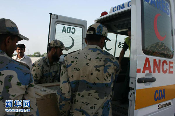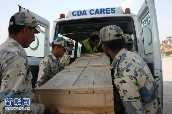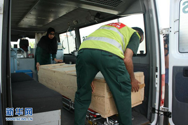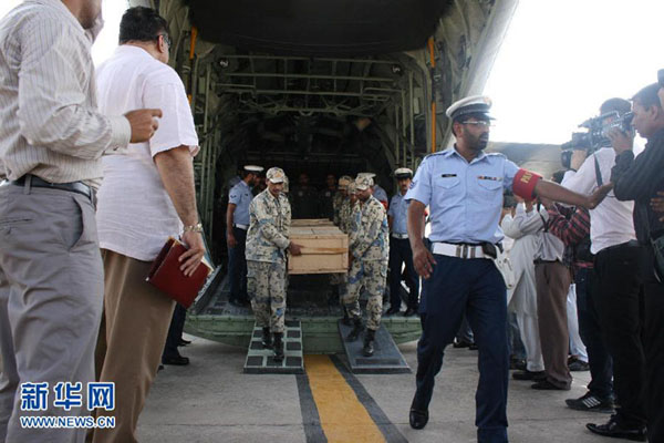 6月23日,在巴基斯坦首都伊斯兰堡,装有遇难中国公民遗体的棺木被抬上车。中国驻巴基斯坦大使馆23日向新华社记者证实,当天凌晨发生在巴北部地区的枪击事件中有2名中国公民遇难。 新华社记者张泳摄