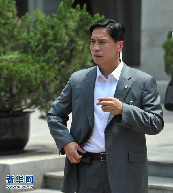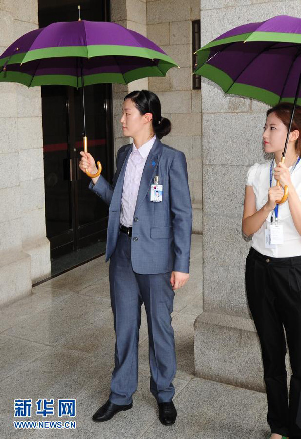 6月29日至30日,韩国总统朴槿惠在陕西访问,记者用镜头记录下了女总统身边安保人员的工作状态。新华社记者 丁海涛 摄