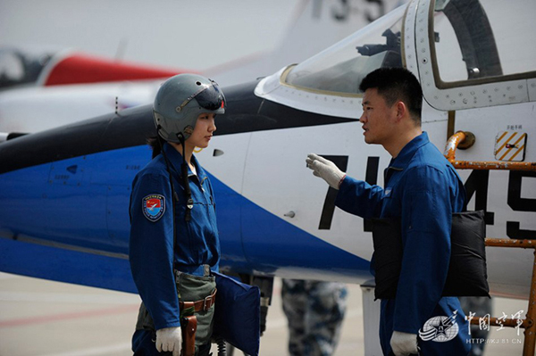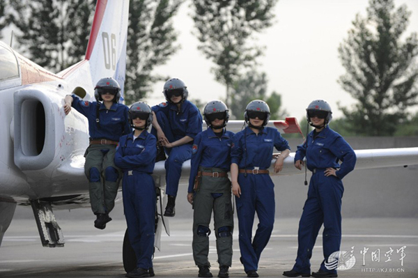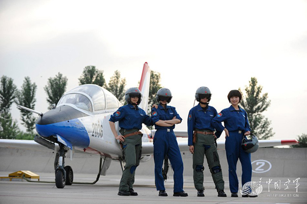 “你飞就是我飞,我飞就是你飞。无论谁离开,剩下的都要努力续写共同的飞天梦!”这是这批女孩子经常挂在嘴边的一句话。图为和战鹰合影(林源 摄)