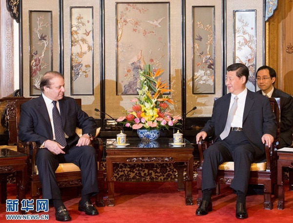 国家主席习近平4日在钓鱼台国宾馆会见巴基斯坦总理谢里夫。