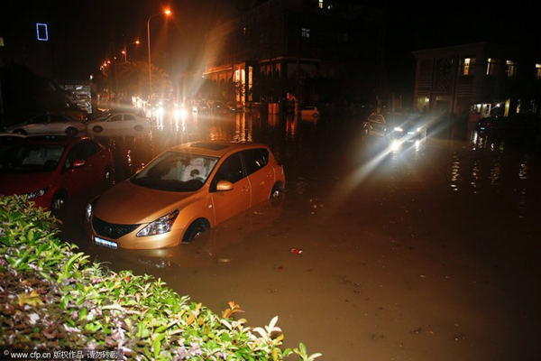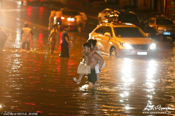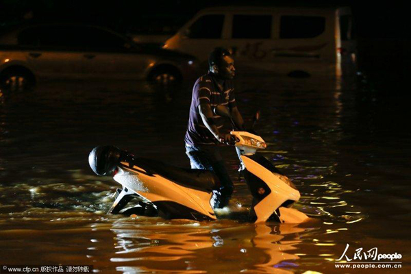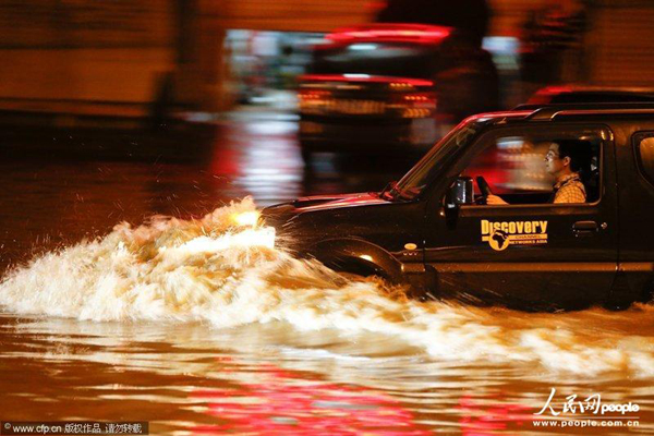 武汉遭遇强降雨雷暴天气 路面大量积水成泽国