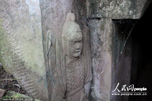 2013年07月08日,四川内江,墓门两旁精美的浮雕图案。兰自涛/CFP
