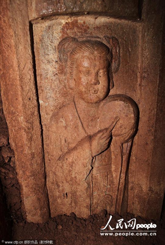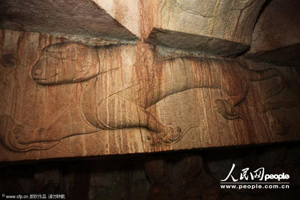 2013年07月08日,四川内江,墓室内精美的浮雕图案。 兰自涛/CFP