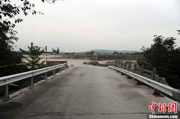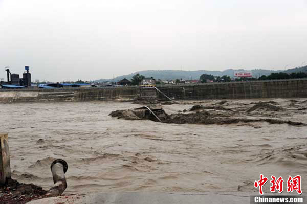 7月9日上午11:30左右,四川江油青莲镇一座地震后加固的老石拱桥被洪水冲垮,200米长桥上过往的车辆瞬间落入滚滚江水中。目前,绵阳各部门正抓紧时间展开救援。(周洪攀 摄)