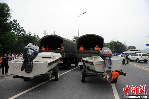 图为驻绵部队赶到事发现场进行搜救。