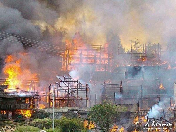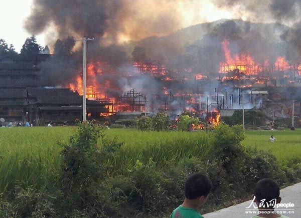 2013年08月05日,湖南省怀化市靖州苗族侗族自治县寨牙乡江口村4组、5组所在团寨发生特大火灾。经消防官兵5小时的全力扑救,大火已经被扑灭。据初步统计,火灾共造成58户、248名村民房屋被烧毁,无人员伤亡。