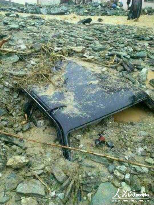 暴雨洪涝灾害,碧口镇当地居民车辆被洪水淹没。
