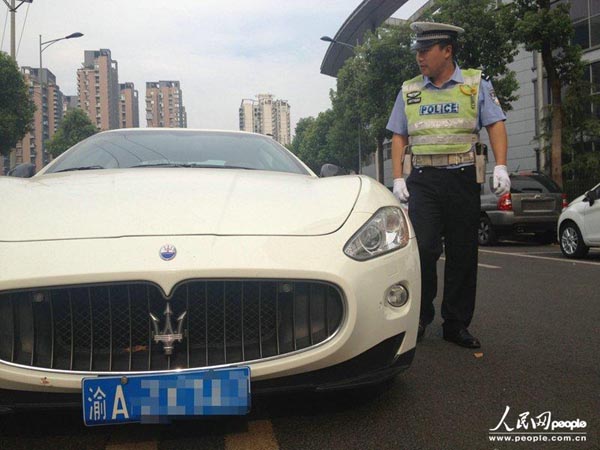 2013年8月9日下午3点左右,重庆,热心读者王女士称在渝北区冉家坝一家事业单位的大楼外,一辆白色的玛莎拉蒂跑车停在了道路中央的双黄线上,开车的是一个身高1米7以上的高个子美女,车停好后人就走了。“这样停车,太没有公德心了。”王女士说,记者随即赶往现场了解情况。
