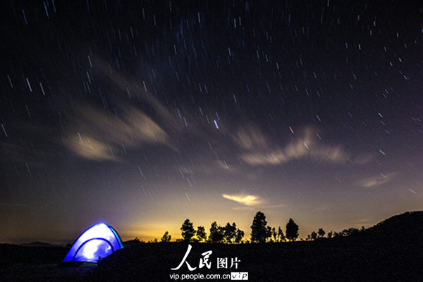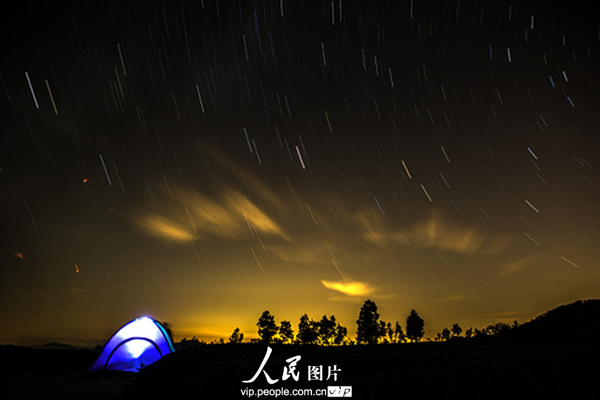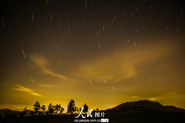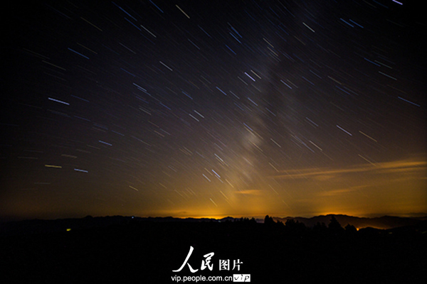 昨夜今晨,英仙座流星雨光临七夕,在这浪漫的时刻,触发了众多摄影发烧友的创作激情,纷纷各显其才,披星戴月赶往各地理想的拍摄地点,这是在浙江余姚四明山拍摄的星轨与流星雨。姜海/图片来源:人民图片 版权作品、请勿转载