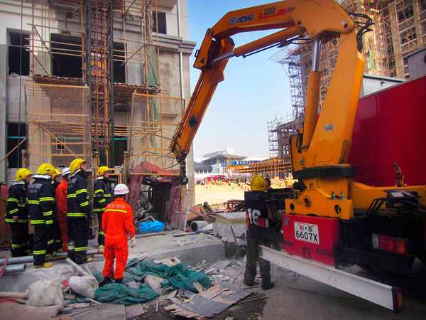 接到报警后,消防人员立即赶赴现场,发现5名工人都被困在梯笼里面,身上还被施工所用的重物压着。由于梯笼变形严重,救援空间不足,在工地的起重机配合下,经过1个半小时的破拆抢救,终于将5名被困工人全部救出。随即被急救车送往医院治疗,但因伤势严重,5人全部抢救无效死亡。“这幢楼基本上已经完工了,电梯也正准备拆除,具体出事原因我们也不清楚。”工地员工这样说到。据悉,电梯里面被困的五个人一个是内装饰工,四个是油漆工。电梯坠落原因可能是缆绳断裂使电梯突然从高层坠落。目前,这起事故的具体原因,警方和安监部门还在进一步调查中。相关善后事宜也正有序展开。