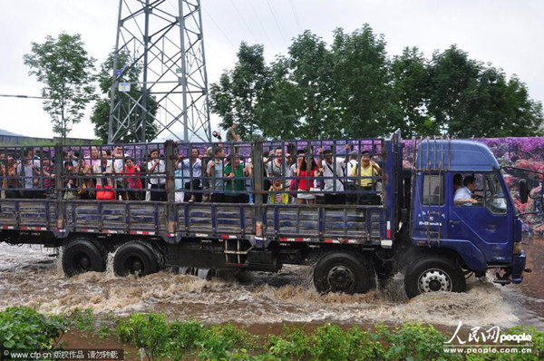 官方回应:因积水临时租卡车接送旅客