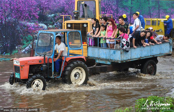 8月15日11时20分,“晓朴2011”发微博说,“今天从伊春机场到巿区,机场路被大水淹没,一系列周折,机场老总亲自拿喇叭指挥”。“晓朴2011”在微博中配发的多张照片显示,拎着各种行李的旅客,当时正在一位穿制服的男性工作人员的指挥下,踩着木板登上一辆卡车,卡车背后则是一处积水路段,有工作人员正在排水。此外,网友“陆亚明”发布的图文微博亦显示,数十名乘客正搭乘一辆八轮大卡车驶离机场前空地。