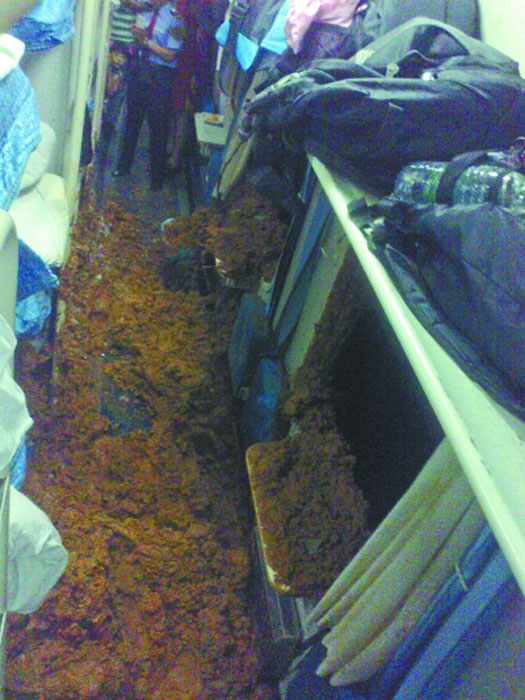 眼前的一幕让徐文胜惊呆了!从事乘警工作快30年了,他是第一次看见这样的场景:三个车窗玻璃被击打得粉碎,过道内堆满了泥土、碎石,有人被泥土埋没,只剩小腿露在外面。