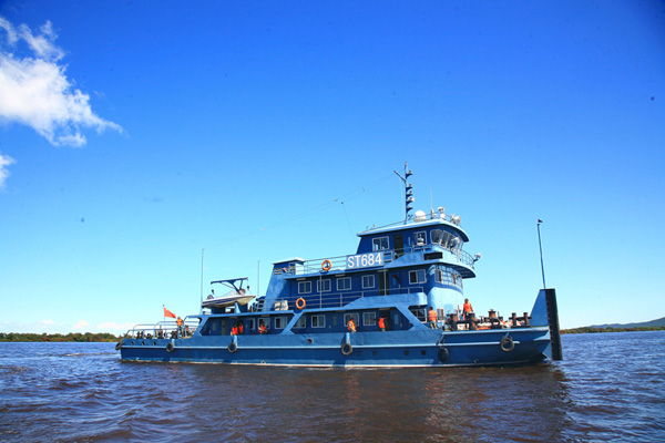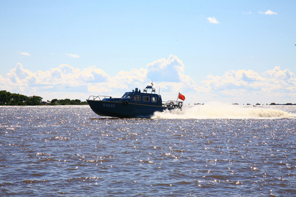 8月27日,600马力推船在黑龙江同江段执行勘探和指挥任务。新华社发(吴跃飞 摄)
