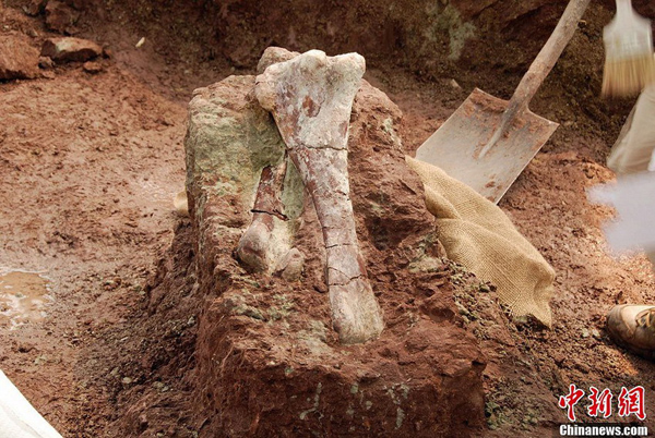 图为待取出的恐龙化石。李庆盛 摄