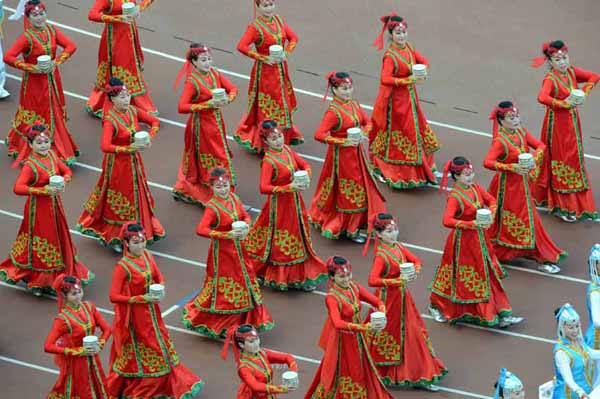 这是开幕前的暖场表演。新华社记者王松摄