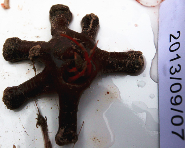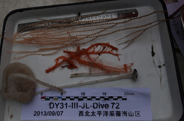 这是9月7日拍摄的“蛟龙”号第72次下潜取到的珊瑚和海绵。新华社记者余晓洁摄
