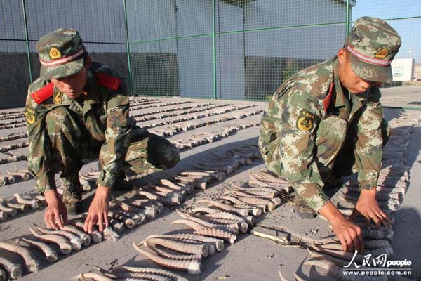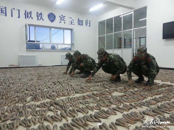 近日新疆公安边防总队吐尔尕特边防检查站与口岸海关联手查获一起特大走私案,共查获羚羊角35箱,4470根,马匹6匹,涉案金额高达1.4亿元。