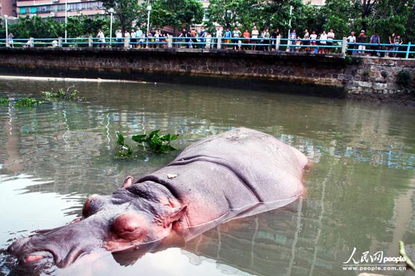 汕头海水倒灌 动物园河马“越狱”出逃