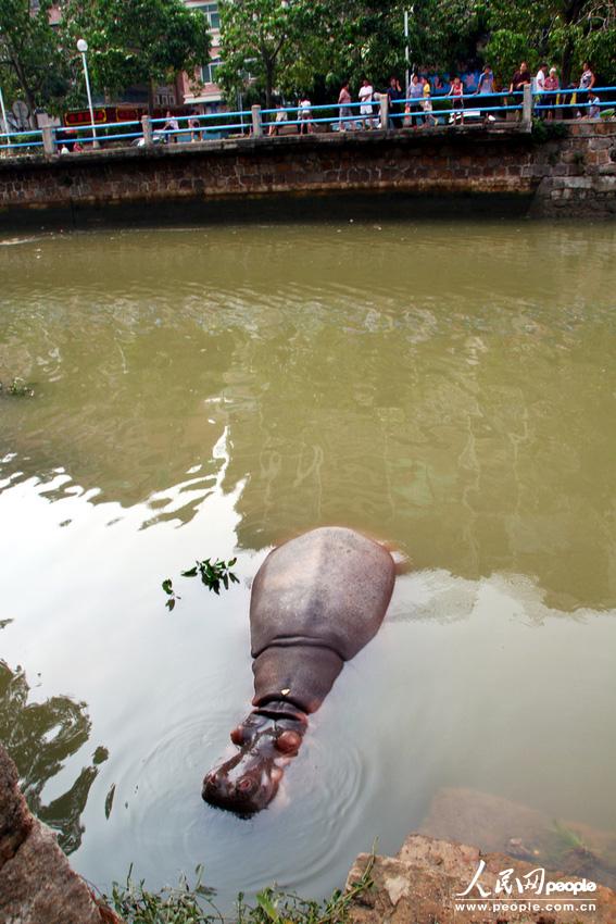 2013年9月23日,汕头,出逃河马引来不少市民围观。杨立轩/版权作品、请勿转载