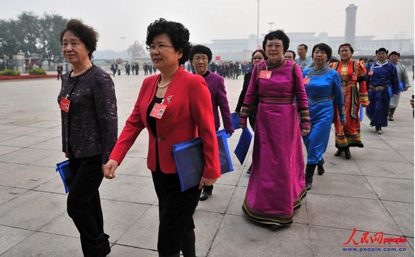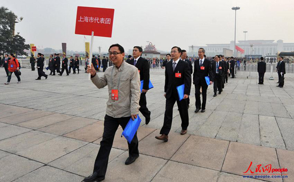 2013年10月18日,中国工会第十六次全国代表大会开幕,代表步入人民大会堂。(人民网记者-翁奇羽-摄)