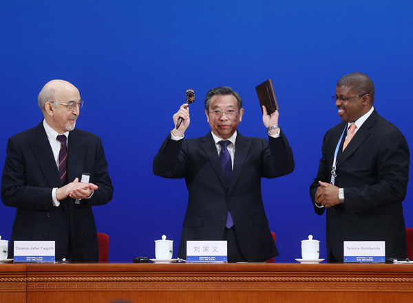10月22日,刘家义在接任世界审计组织主席仪式上。新华社记者 王申 摄